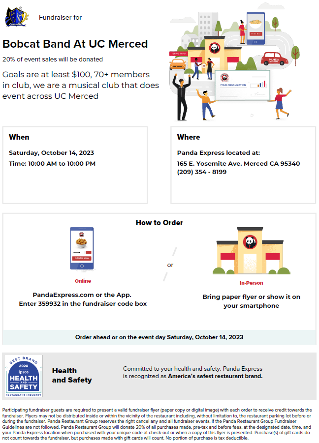 The Bobcat Band will be having a fundraiser at Panda Express! Please show this flyer to the cashier: Link. We’d love your support!